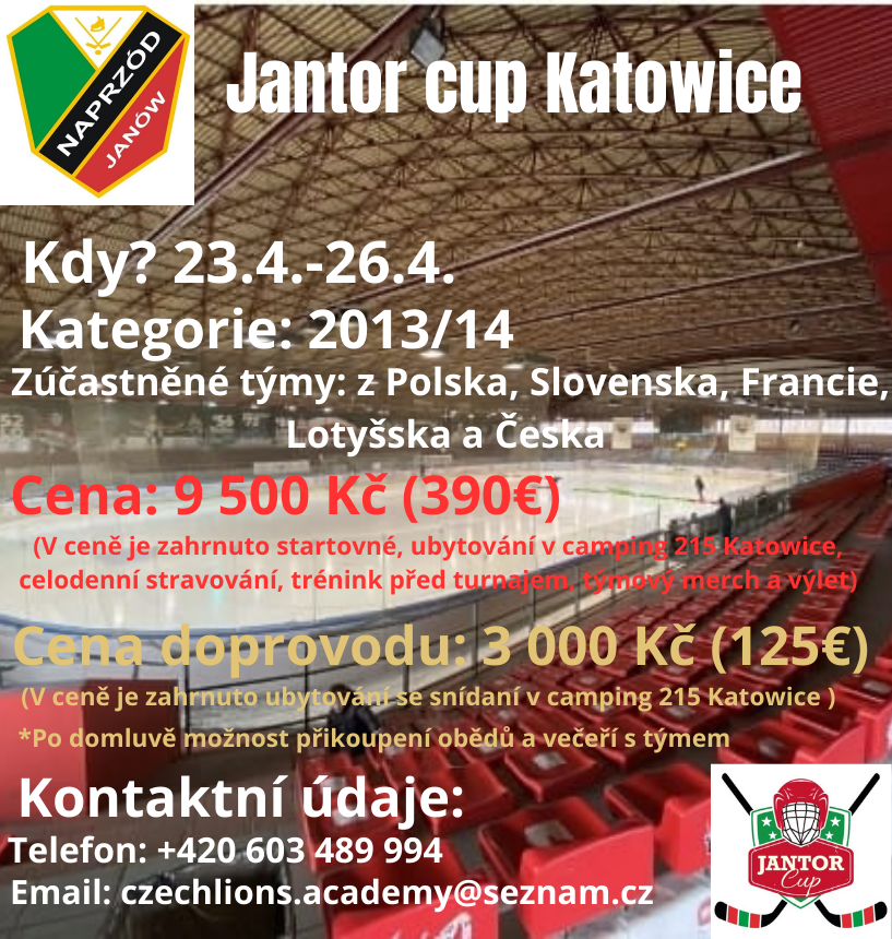 Garantujeme: skvělou hokejovou zábavu na turnaji, nové zkušenosti s mezinárodními týmy, týmový merch a krásný výlet do Papugarnia Katowice.