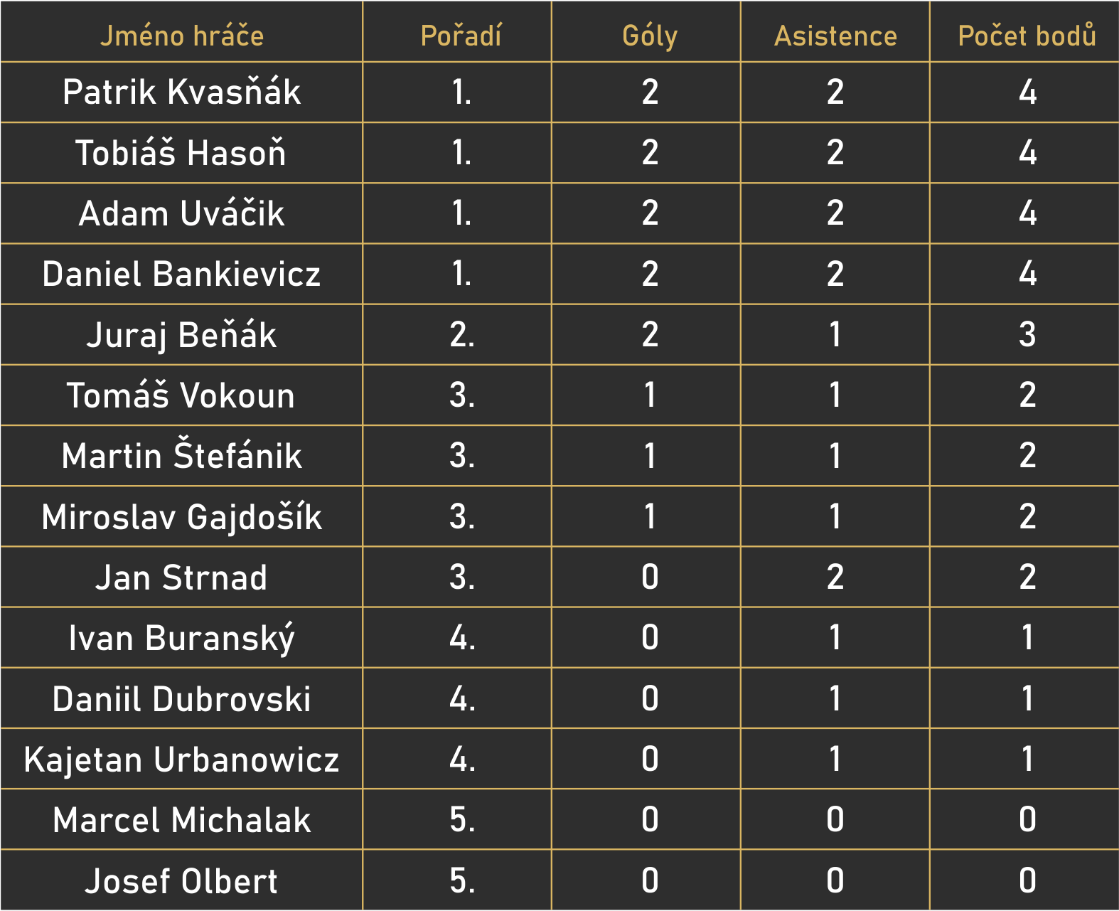 Seznam hráčů na turnaji: