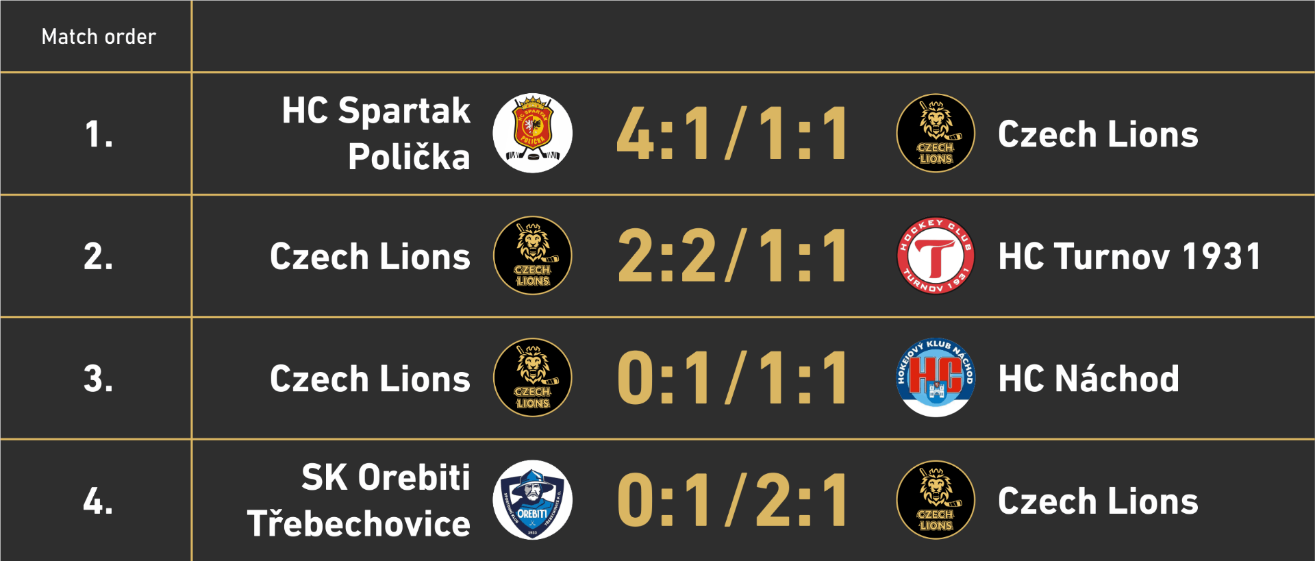 Match results: